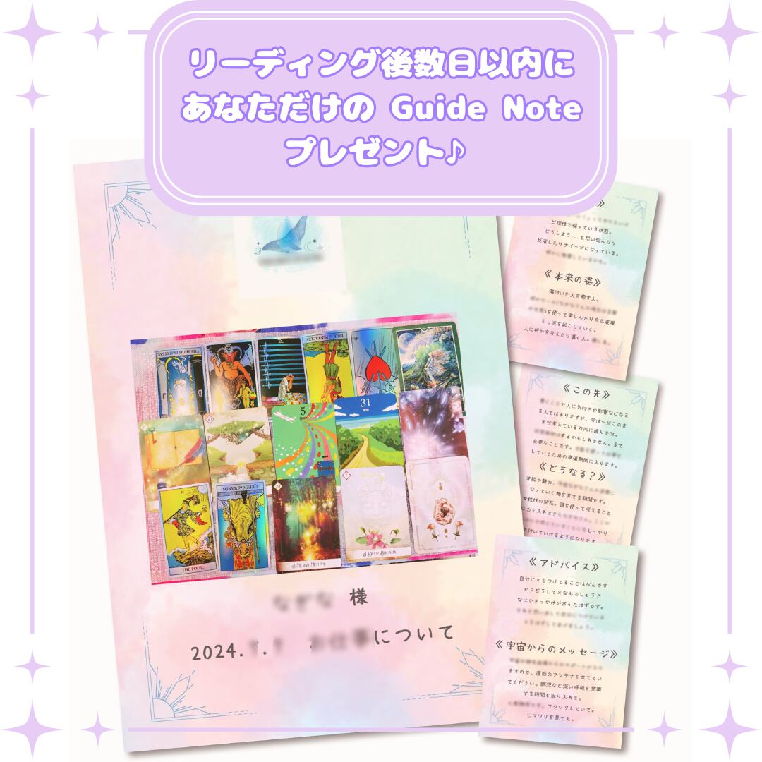 ⑤リーディング終了後、数日以内に今回受け取ったメッセージからあなただけのGuide Noteを作成しメールで送信いたします。